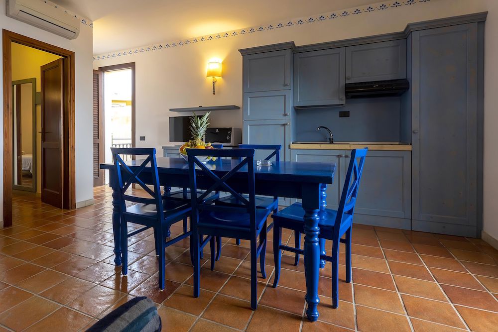 I bilocali, situati al piano terra o al primo piano, si estendono su una superficie di circa 45 m². Ogni appartamento è composto da soggiorno con angolo cottura completamente attrezzato e divano letto a due posti, disimpegno, bagno privato con doccia, bidet, asciugacapelli e kit di cortesia disponibile il giorno dell’arrivo, e zona notte.