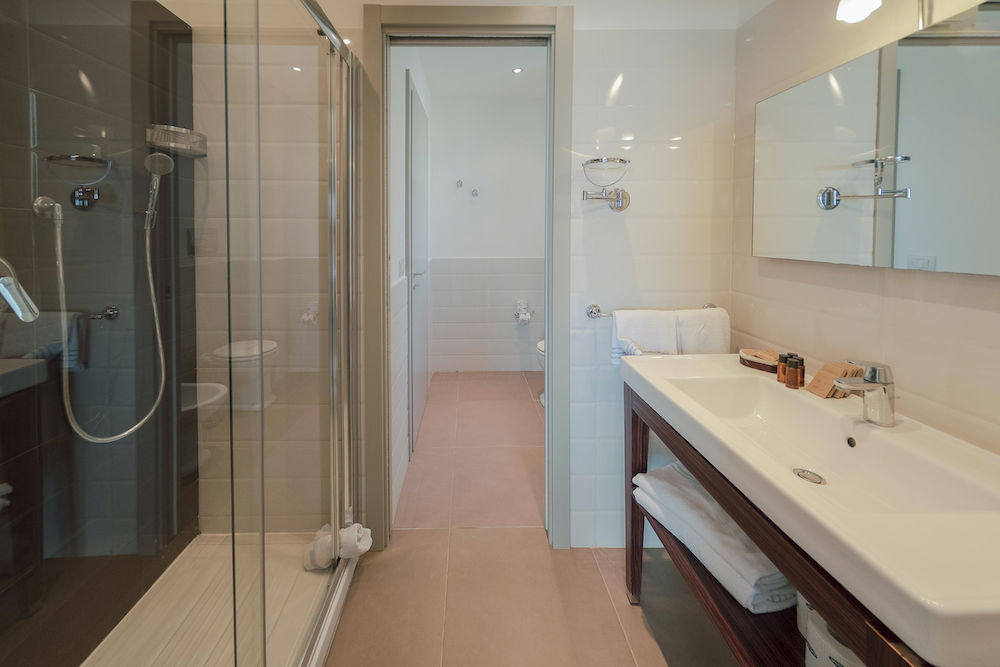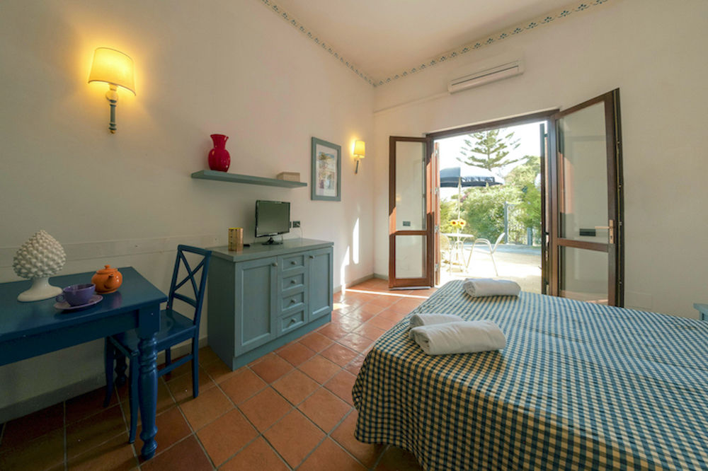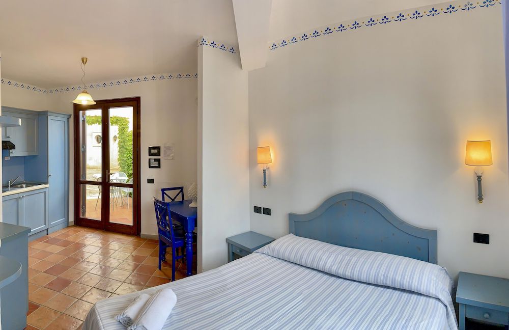 73 apartments including studios, one-bedroom and two-bedroom units, surrounded by greenery and just a short walk from both the beach and the town centre. Designed in an authentic Mediterranean style, they feature decorative wall details, terracotta floors, wooden window frames, and high-quality solid wood furnishings.